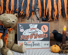 HTF PRIMITIVE VINTAGE RETRO MODERN STYLE HALLOWEEN BAG O TREATS ADVERTISING SIGN