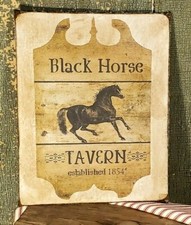VINTAGE PRIMITIVE FOLK ART OLD STYLE BLACK HORSE TAVERN ADVERTISING CANVAS SIGN