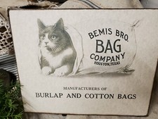 VINTAGE PRIMITIVE FARM HOMESTEAD STYLE BEMIS CAT FEED GRAIN BAG ADVERTISING SIGN