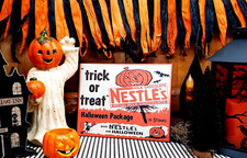 PRIM OLD MODERN VINTAGE RETRO STYLE HALLOWEEN NESTLES CANDY BOX ADVERTISING SIGN