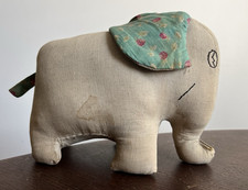 Antique Elephant Stuffed Animal Toy 1930s Folk Art Primitive Quilt Ears Textile