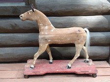 Vintage Wooden Horse on Wheels, Primitive Folk Art Toy, Rustic Western Decor