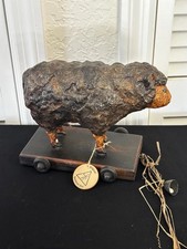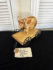 Rare Vintage Kay Cloud Ozark Folk Art Sawdust Clay Cow Bull Ox Pull Toy & Note
