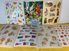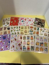 Lot Of 7 Sheets Of Vintage Hallmark Stickers Teddy Bears Tropical Birds Cats Etc