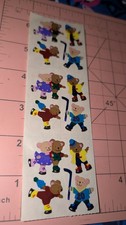 Vintage Sandylion Stickers Teddy Bears Hockey Skating Strip Of 3 Modules