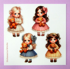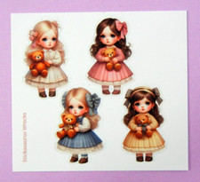 Vintage Little Girls & Teddy Bears Sticker Sheet Style 2