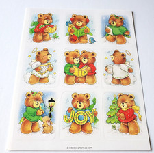 Vintage Hallmark Stickers Christmas Teddy Bears 1 sheet