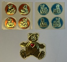 Lot of 9 Vintage Stickers Teddy Bears Gold Foil Embossed Sticker