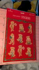 Vintage Hallmark Stickers Christmas Teddy Bears Stocking 4 Sheets New In Pack