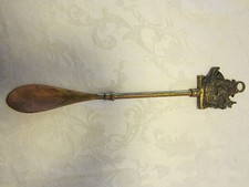 Antique Reproduction Shoe Horn Solid Brass Wooden Handle Vintage Nautical Style