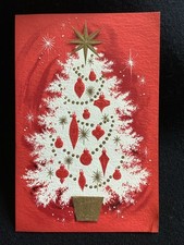 Vintage Unused Unbranded Mid Century Christmas Greeting Card Mod Tree