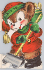 Card Anthropomorphic Christmas Greeting Vintage Mid Century Bear Dressed
