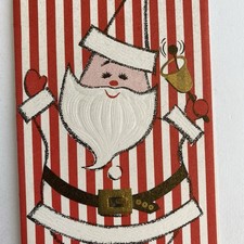 Vintage Mid Century Christmas Greeting Card Cute Atomic Santa Claus Candy Stripe