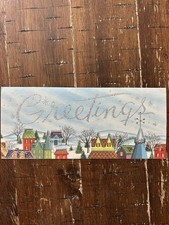 Vintage Mid-Century Christmas Card Bright Townscape Glitter Greeting Retro Color