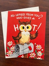 Vintage RAZZLE DAZZLE Mid Century Greeting Card Hoot Owl Surprise UNUSED + Env