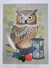 Vintage 70s K Chin Owl Litho Print Mid Century Modern Donald Art Co. 9" x 12"