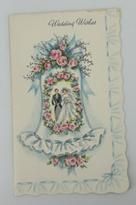 Vintage Wedding Wishes Greeting Card White Bell Cople Glitter Mid Century 60's