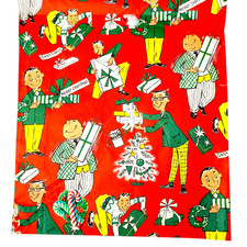 AMAZING Vintage 1950s Christmas Wrapping Paper MID-CENTURY Man Theme MCM