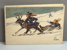 Vintage Mid-Century Card By Aina Stenberg -Mittet Greeting Norway Reindeer Skier