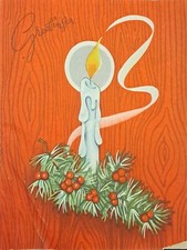 1955 Vintage Christmas Greeting Card MCM Mid Century Candle