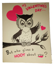Vtg Mid Century Modern Buzza OWL Day Glo Glow Pink Valentine's Day Card 60s MCM