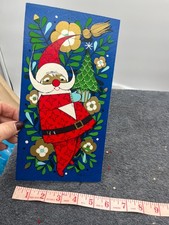 Santa Claus & Striped Cat Retro Mid Century Mod Groovy Greeting Card Unused NOS