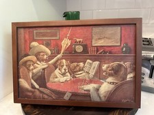 Vintage Mid Century C.M. Coolidge "Dogs Playing Poker" Canvas Brushstrokes 10X15