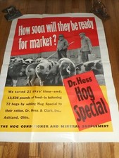 Vintage DR HESS FARM HOG PIG SPECIAL MINERAL Advertising Farm Poster Sign