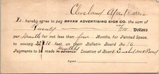 Bryan Advertising Sign Co Cleveland OH 1896 Receipt
