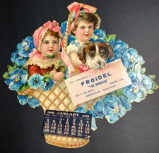 1908 Advertising Die Cut Calendar Sign Froidel Sheboygan Wisconsin Cute Kids