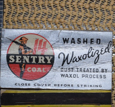 SENTRY COAL MATCHBOOK COVER WASHED WAXOLIZED ADVERTISING SIGN VINTAGE 1940s WWII