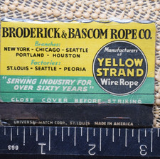 BRODERICK & BASCOM ROPE MATCHBOOK COVER YELLOW ADVERTISING SIGN VINTAGE 1940s