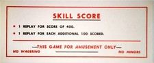 Skill Score Pinball or Arcade Game Machine Replay Card 1950s-1960s Vintage #1