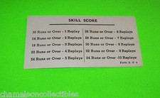 Skill Score Pinball Or Arcade Machine Original Score Value Card Vintage 1950's
