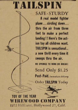 Wirewood Tailspin Toy Fighter Plane Circling Down To Land Vintage Print Ad 1947