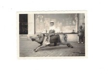SE1357 VINTAGE PRIVATE PHOTO . 2.5 X 3.5 INCH BOY ON A BIG PIG TOY ANIMAL