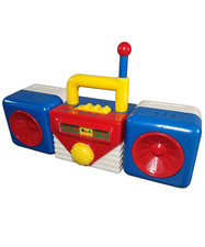 Vintage Red, White and Blue Nursery Rhymes Playing Toy Boom Box with Handle Rare