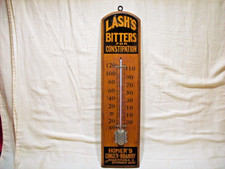 ANTIQUE WOOD THERMOMETER LASH'S BITTERS HOMER'S GINGER BRANDY