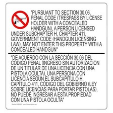Texas 30.06 Concealed Carry Bilingual Label Decal 24 X 24 In