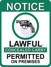 NOTICE LAWFUL CONCEALED CARRY PERMITTED Adhesive Sticker Decal Sign 6" x 4"