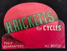 Cycling c1930's H. Ricketts For Cycles Card Advertising Hand Painted Sign