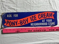 Vintage PONY BOY ICE CREAM 15” Bumper Sticker Advertising Decal Sign Store