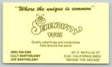 Vintage Business Card Serendipity Toys Ojai California Barthelemy