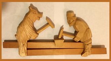 Vintage Hand-Carved Wood Toy - Man + Bear Hammering Blacksmith Fidget 9" x 3.5"