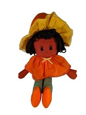 Vintage Brown Girl Doll Hand Sewn Embroidered Plush Stuffed 20" Halloween Fall