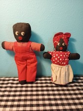 3- Vintage African American 6" Doll Rag Primitive Folk Art Craft Handmade 1980s