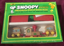 Vintage 1974 Snoopy Express Mechanical Wind-Up Wood Train Peanuts Railroad Toy