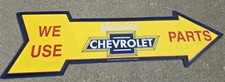 "We Use Genuine Chevrolet Parts" Metal Tin Arrow Advertising Sign 27” x 8.5"