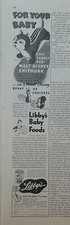 1939 Walt Disney Chipmunk stuffed animal toy Libby's baby food vintage ad