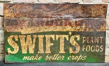 VINTAGE SWIFT'S PLANT FOODS BRIMM TRUCK CROPS ADVERTISING Metal Tin Tacker Sign